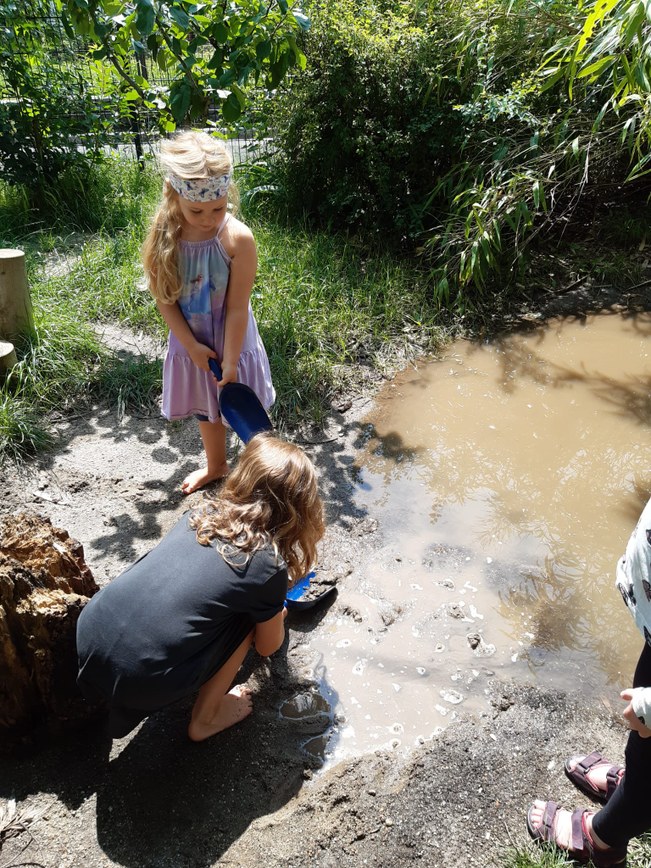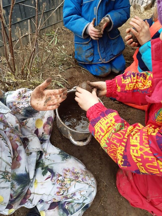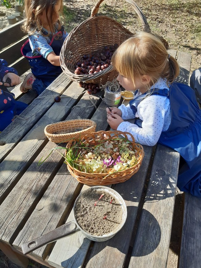 Eingebettet in die Natur, saugt das Kind Lebenskräfte ein, die es nur aus der Natur bekommen kann: es gibt keinen anderen Bereich als diesen. Mit all seinen Leibeskräften gibt es sich den Möglichkeiten hin, die ihm dargeboten werden. Die Kinderseele wird reich, wenn sie sich spielend vertraut machen kann mit Wasser, Erde, Sand, Steinen, Pflanzen und Tieren.